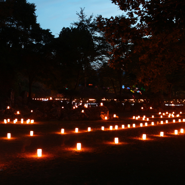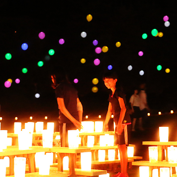 被害は大きく、開催が危ぶまれましたが、全国から10,000人以上のボランティアスタッフの方に、復興のお手伝いをしていただいたことで水害から3ヶ月後、無事に3,000個のろうそくを灯すことができました。